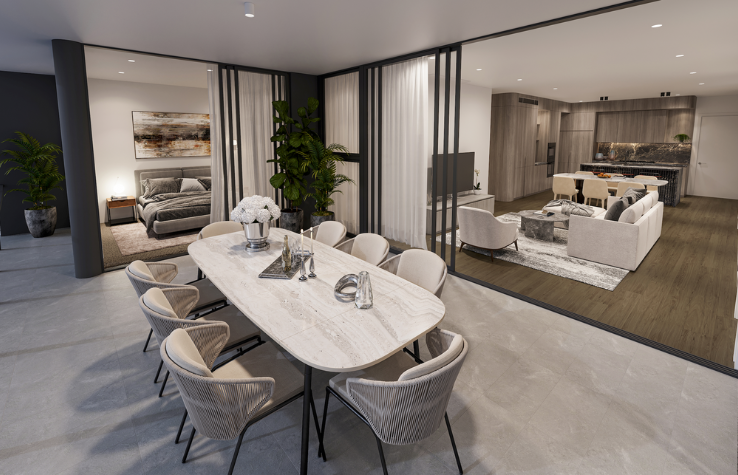 Step into the living areas of these magnificent residences, and you’re greeted with a symphony of impressive styles and meticulous attention to detail. The interplay of textures and tones, from rich timbers to lustrous natural stone and expansive glazing, creates an atmosphere of unparalleled sophistication. Here, every corner tells a story of refined taste and understated luxury.